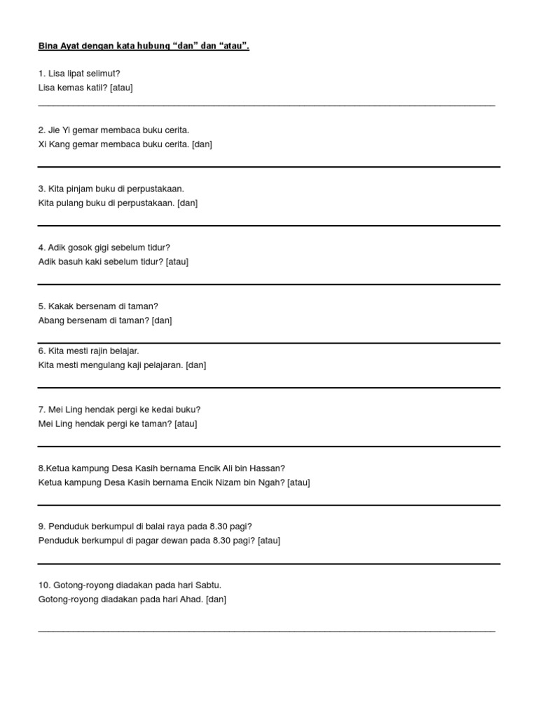 Latihan Bina Ayat Dengan Kata Hubung Pdf